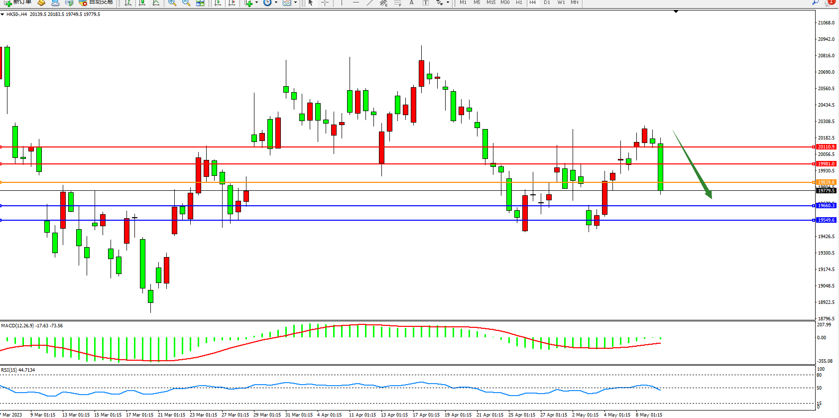 恒指HK50 4小时图