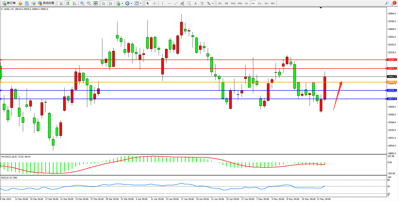 恒指HK50 4小时图