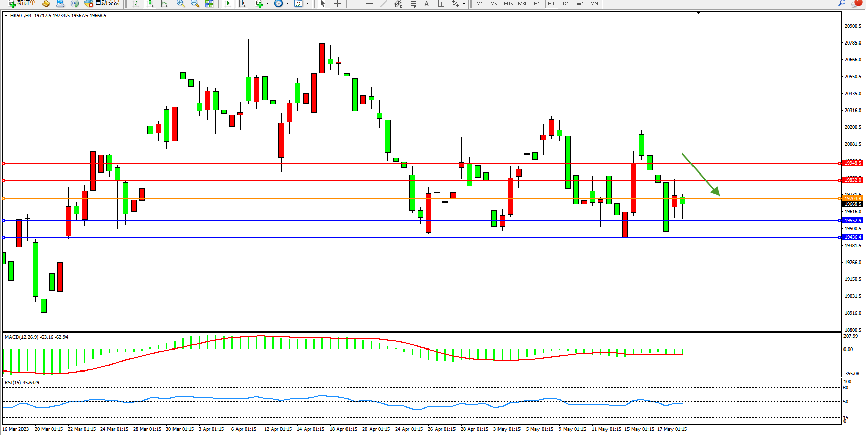 恒指HK50 4小时图