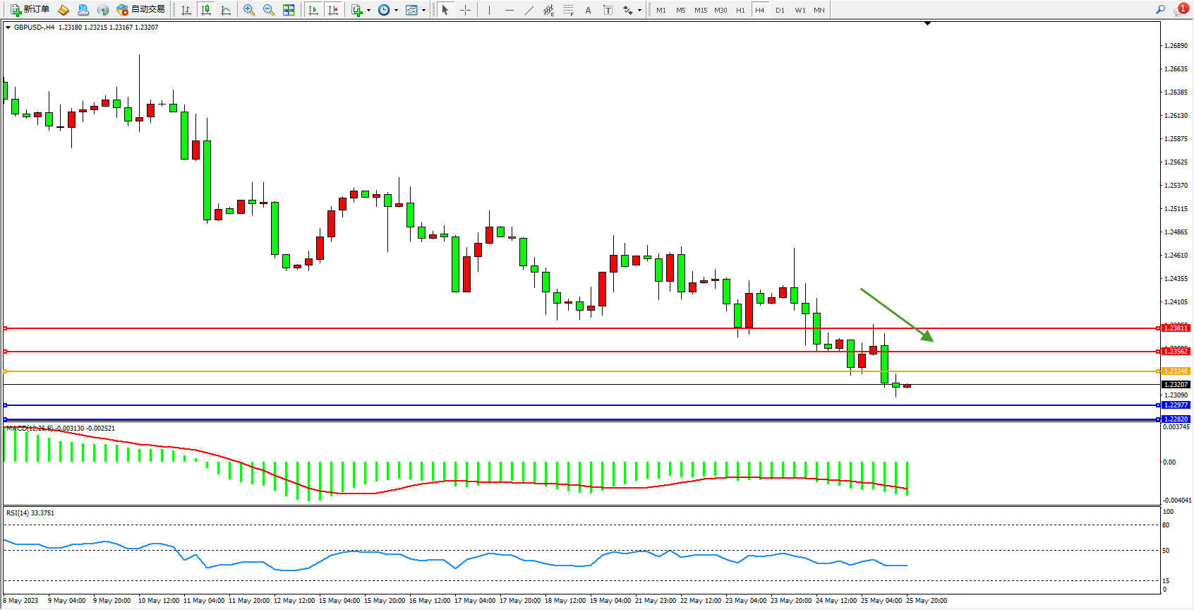 交易策略:1.23348下方看跌,目标1.22977  1.22820