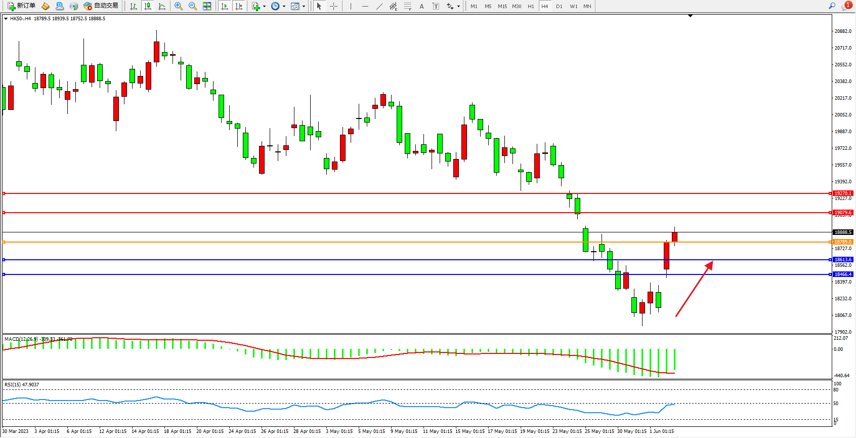 恒指HK50 4小时图