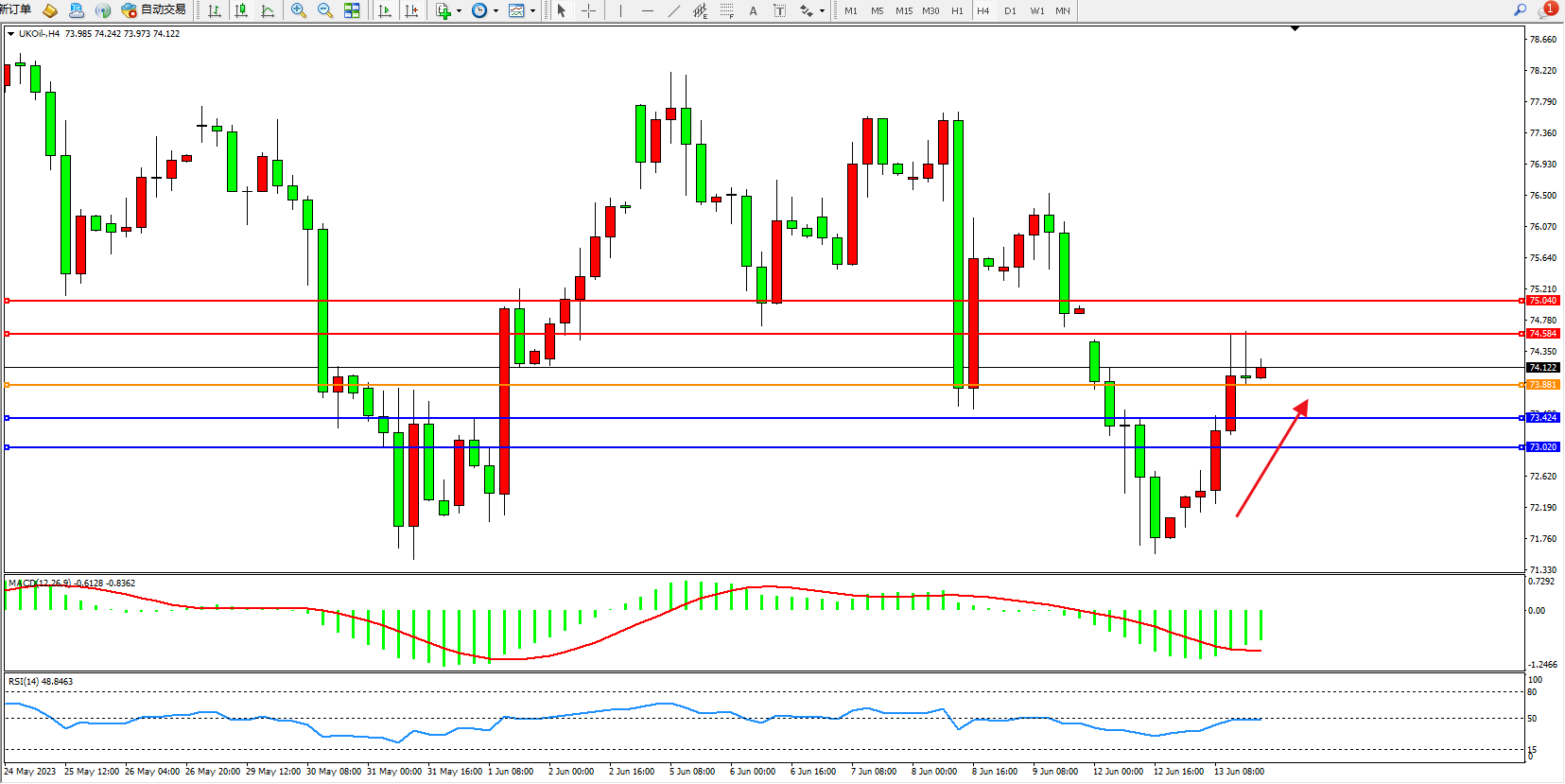 布油维持74.122附近震荡,布伦特原油六个月现货溢价——即较近月合约与远月合约价差——已跌至3月以来的最低水平1.10美元左右,表明市场对全年供不应求的信心正在减弱。