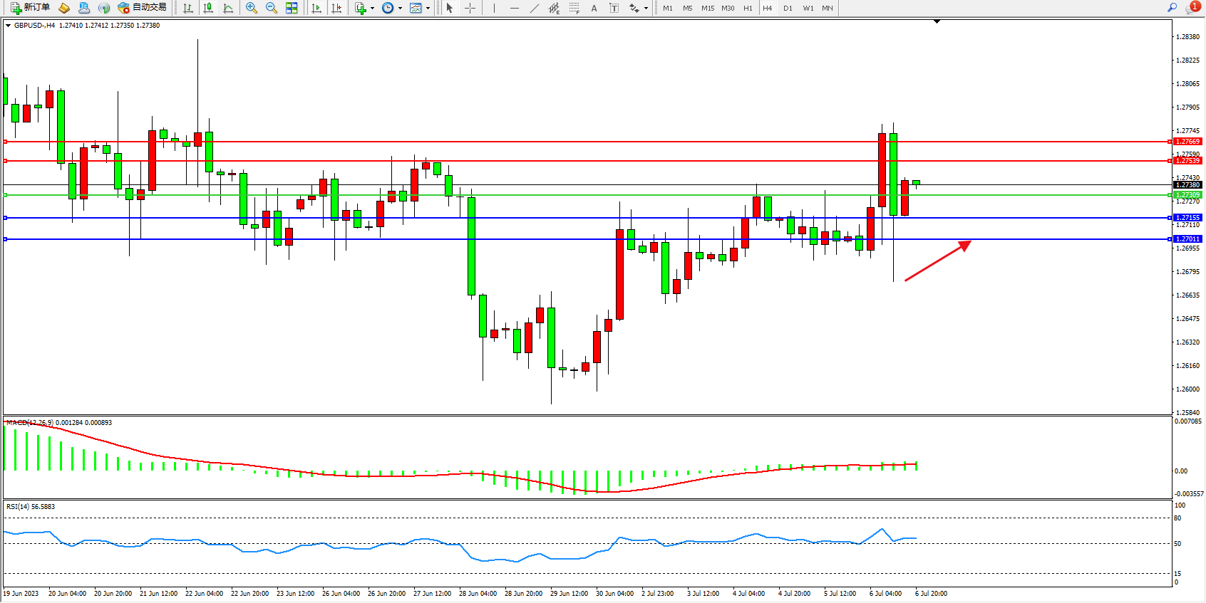 交易策略:1.27309上方看涨,目标1.27539  1.27669