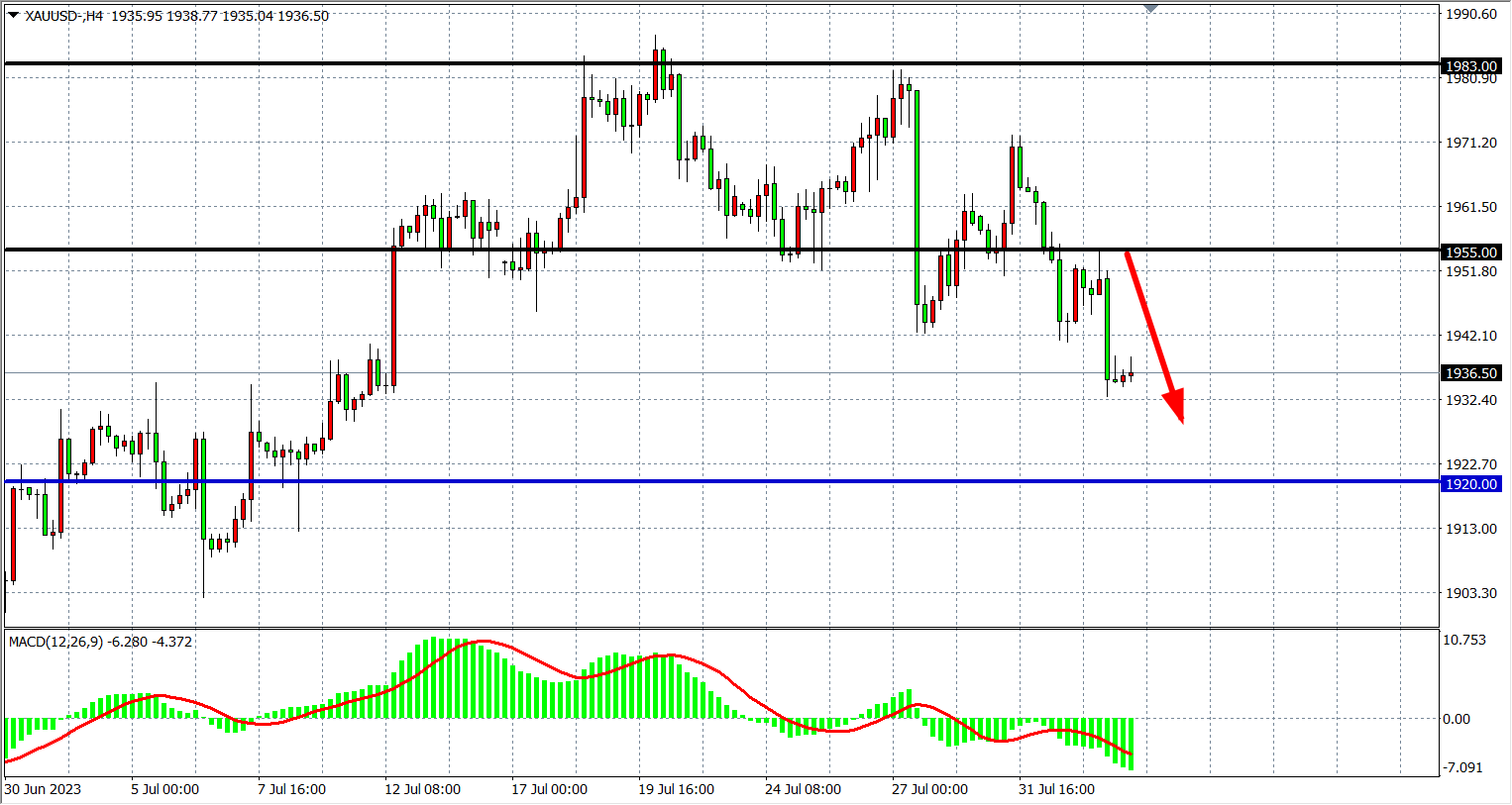 周三(8月2日)因“小非农”数据再度走强,黄金盘中失守1940关口,最终收跌0.49%