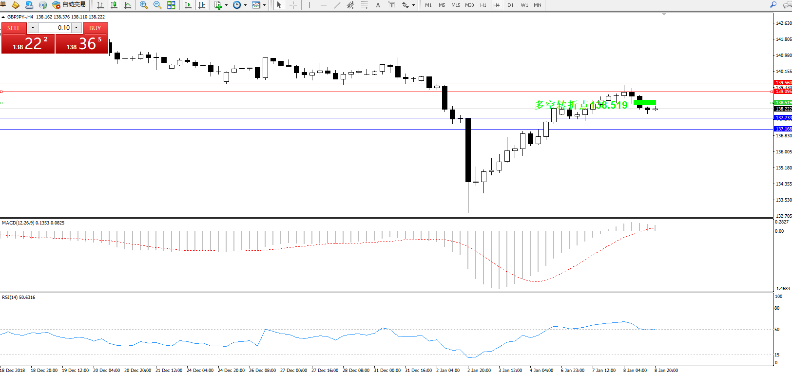备选策略:138.519上方看涨,目标139.095、139.560