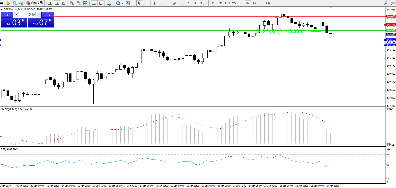 交易策略:143.336下方看跌,目标142.566142.152