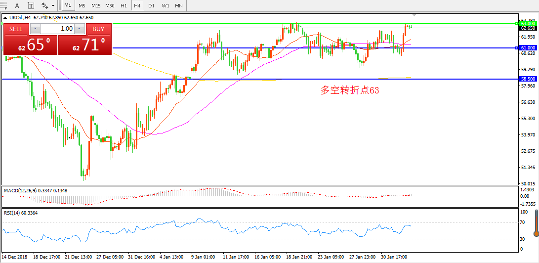 交易策略:在63.00之上看涨,目标66.00 68.00