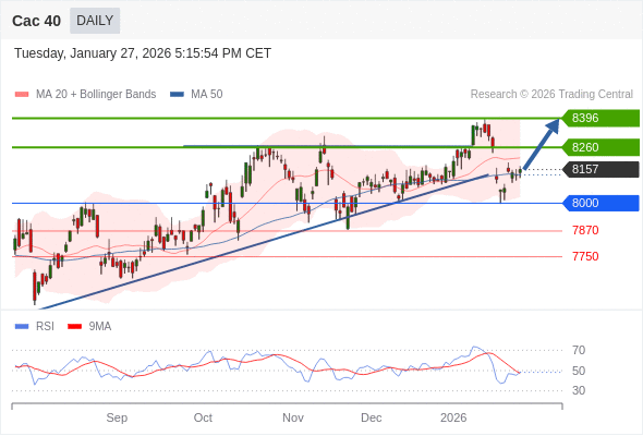 在 8000 之上,看涨,目标价位为 8260 ,然后为 8396 。