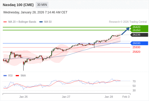 在 26030 之上,看涨,目标价位为 26350 ,然后为 26420 。