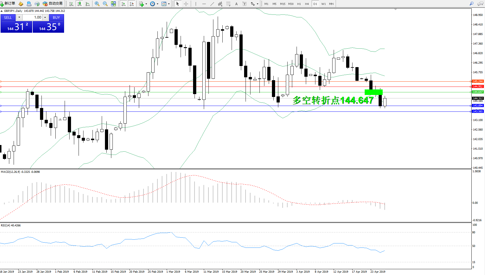 交易策略:144.647下方看跌,目标143.894143.565