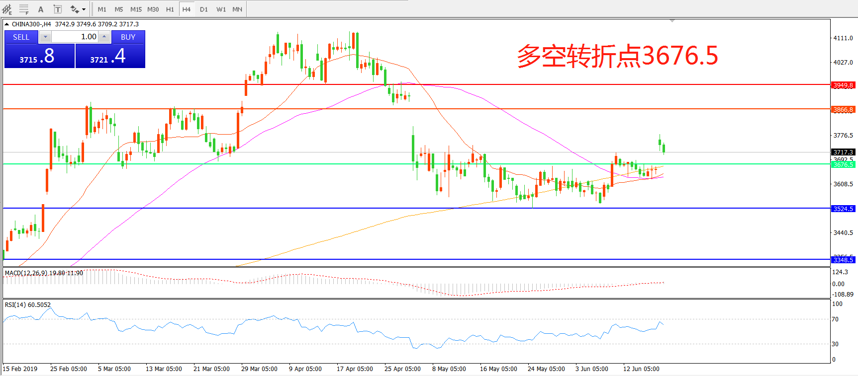 沪深300指数CHINA300 4小时图