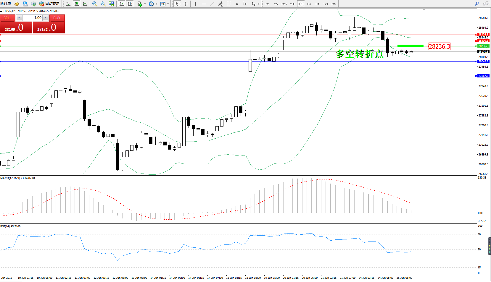 恒指HK50 ——1小时K线图显示: