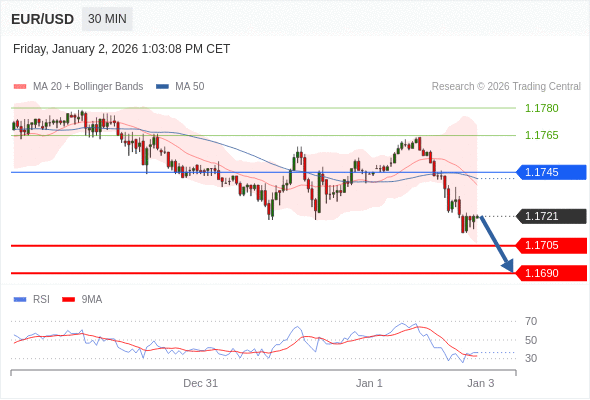 在 1.1745 之下,看跌,目标价位为 1.1705 ,然后为 1.1690 。
