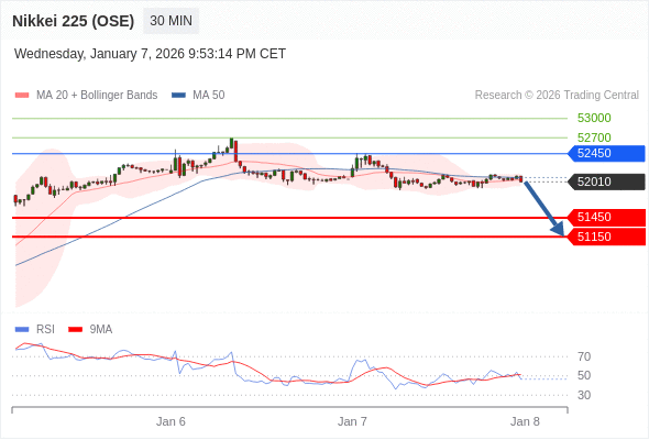 在 52450 之下,看跌,目标价位为 51450 ,然后为 51150 。