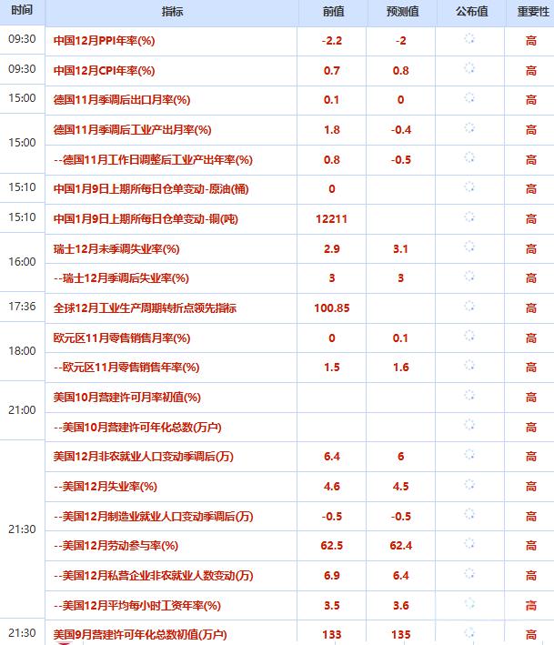 周五(北京时间1月9日)亚市早盘,现货黄金交投于4475美元/盎司附近,金价周四持稳,投资者等待美国非农就业数据以判断美联储政策走向,同时,由于彭博商品指数年度调整本周启动,预计短期内将对金价构成压力;美原油交投于58.40美元/桶附近,因供应面因素推动,油价周四大幅反弹,上涨超3%,收于两周高位。