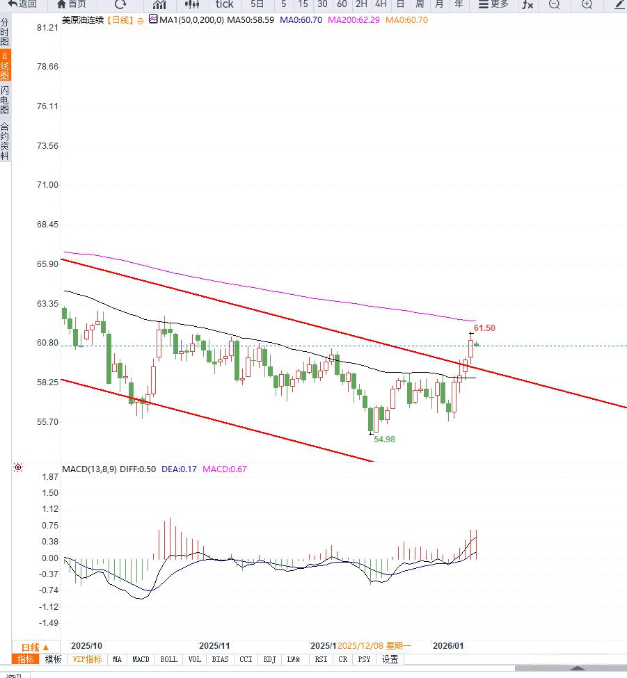 从阻力位来看,61.50—62.00美元区间为近两个月高点密集区域,也是前期下跌趋势中的关键反压位,若无法有效突破,油价可能再度回落至区间整理。