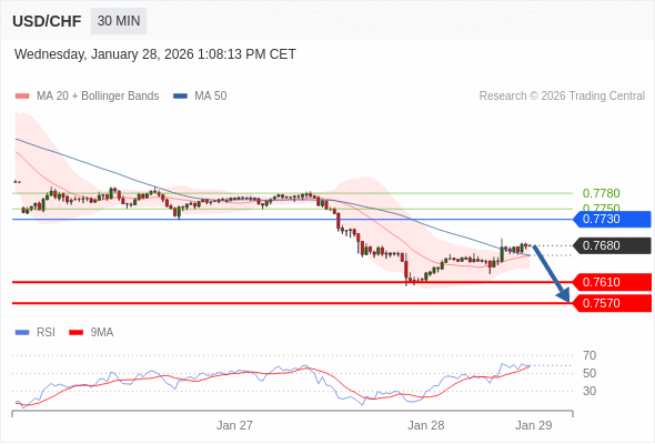 交易策略: 在 0.7730 之下,看跌,目标价位为 0.7610 ,然后为 0.7570 。