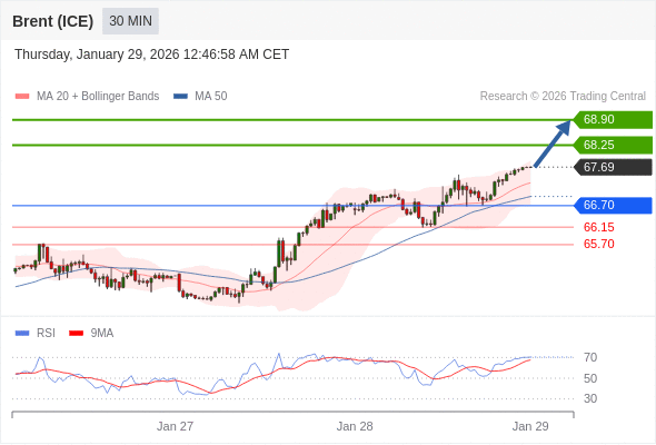 交易策略: 在 66.70 之上,看涨,目标价位为 68.25 ,然后为 68.90 。