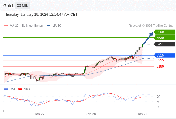 交易策略: 在 5315 之上,看涨,目标价位为 5530 ,然后为 5600 。