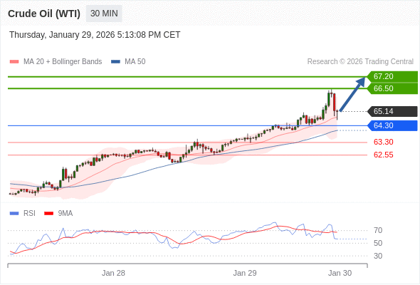 在 64.30 之上,看涨,目标价位为 66.50 ,然后为 67.20 。