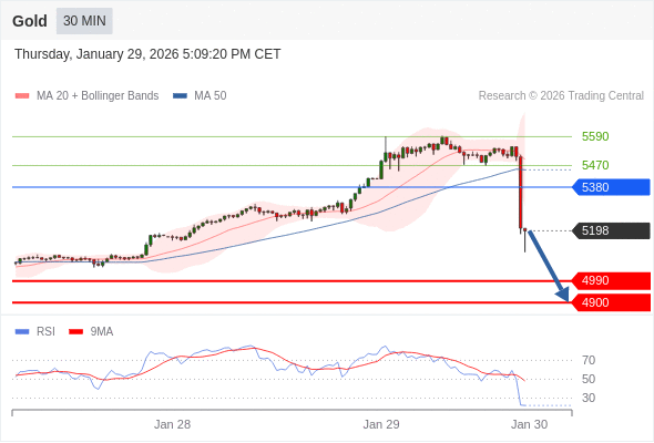 在 5380 之下,看跌,目标价位为 4990 ,然后为 4900 。
