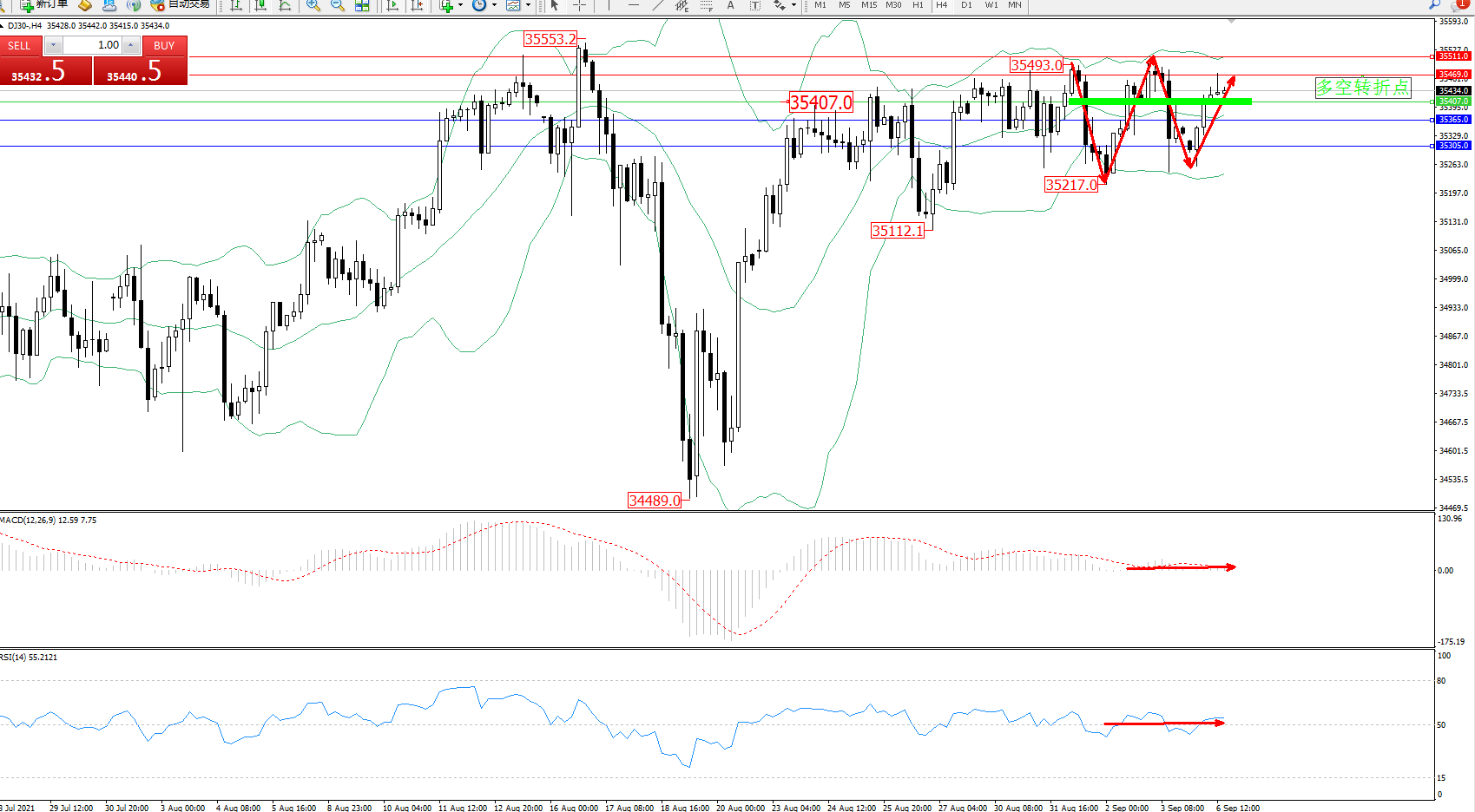 周一美国纽约证券交易所劳动节,休市一天。道琼斯指数9月3日(周五)收盘下跌74.73点,跌幅0.21%,报35369.09点;美国8月非农就业岗位增加23.5万个,远低于市场预期,但失业率从前一个月的5.4%降至5.2%。美联储主席鲍威尔呈表示,尽管如果就业增长持续下去,联储可能会在今年开始缩减刺激计划,但并不急于这么做。投资者权衡美国招聘急剧放缓是否会导致美联储推迟经济刺激措施。交易员转向了被视为避风港的的大型科技股,最近几周新增病例不断上升引发了人们对经济复苏可能陷入停滞的担忧。就业报告可能会让美联储按兵不动。