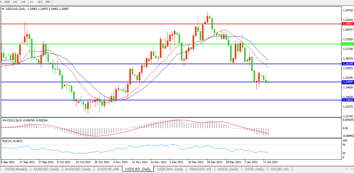 美元兑加元USDCAD 日线图: