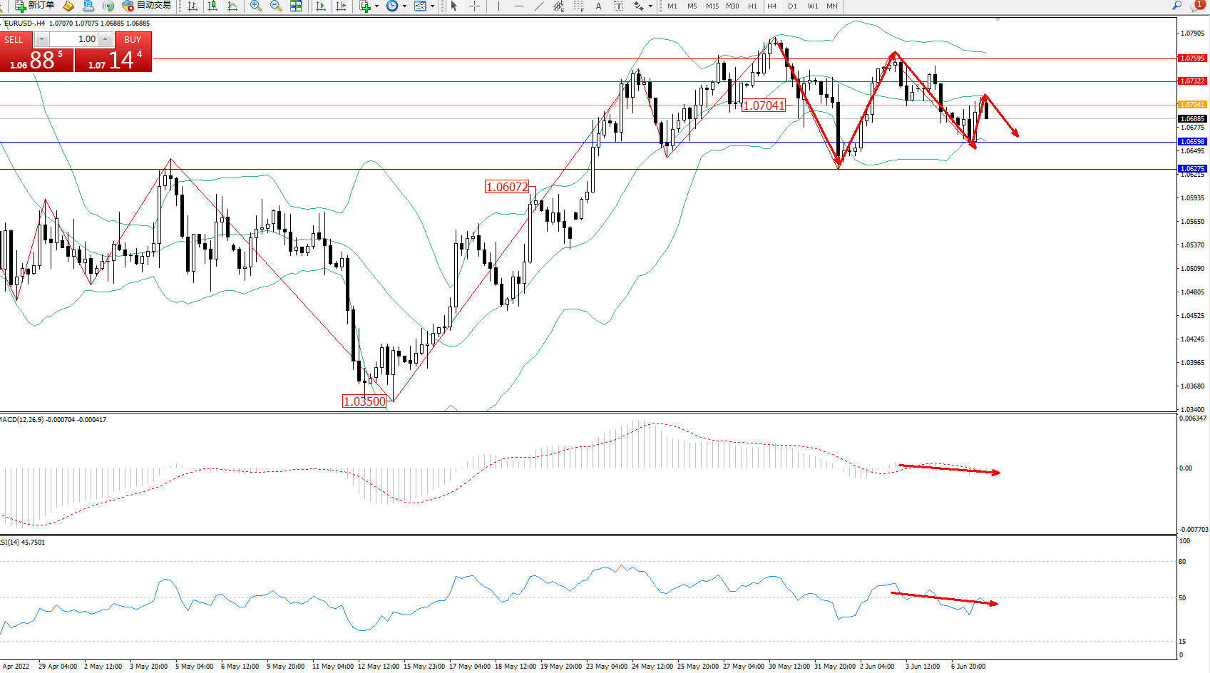 交易策略:1.07041下方看跌,目标1.06598、1.06275