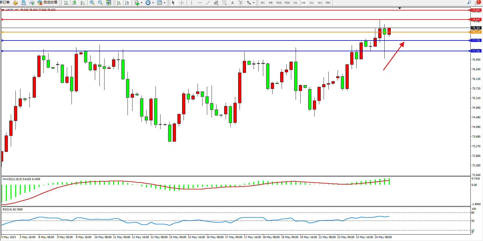 布油UKOil——4小时K线图显示:
